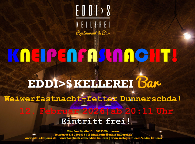 Weitere Informationen/Anfragen telefonisch unter 06331 2592835 oder per Mail hello@eddis-kellerei.de